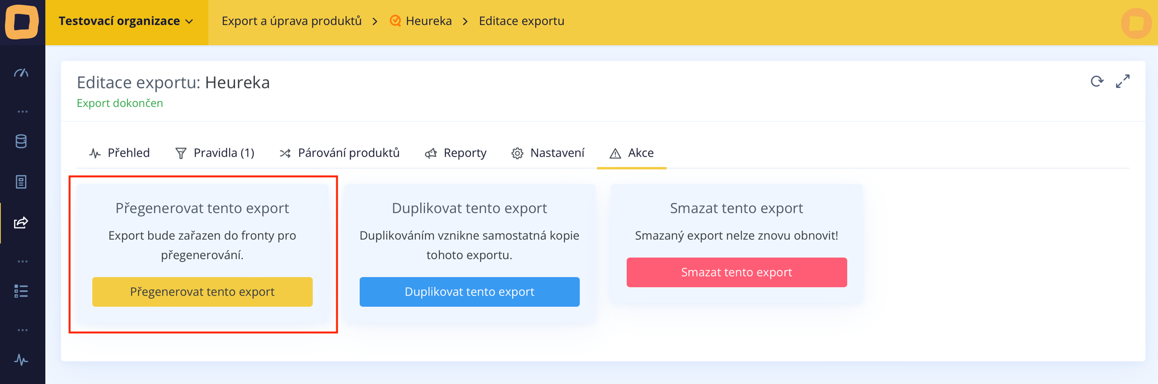 Dann auf "Diesen Export neu generieren" klicken. Dadurch wird der Export aktualisiert und die Anwendung der von uns erstellten Regel unter Verwendung von KI gestartet.