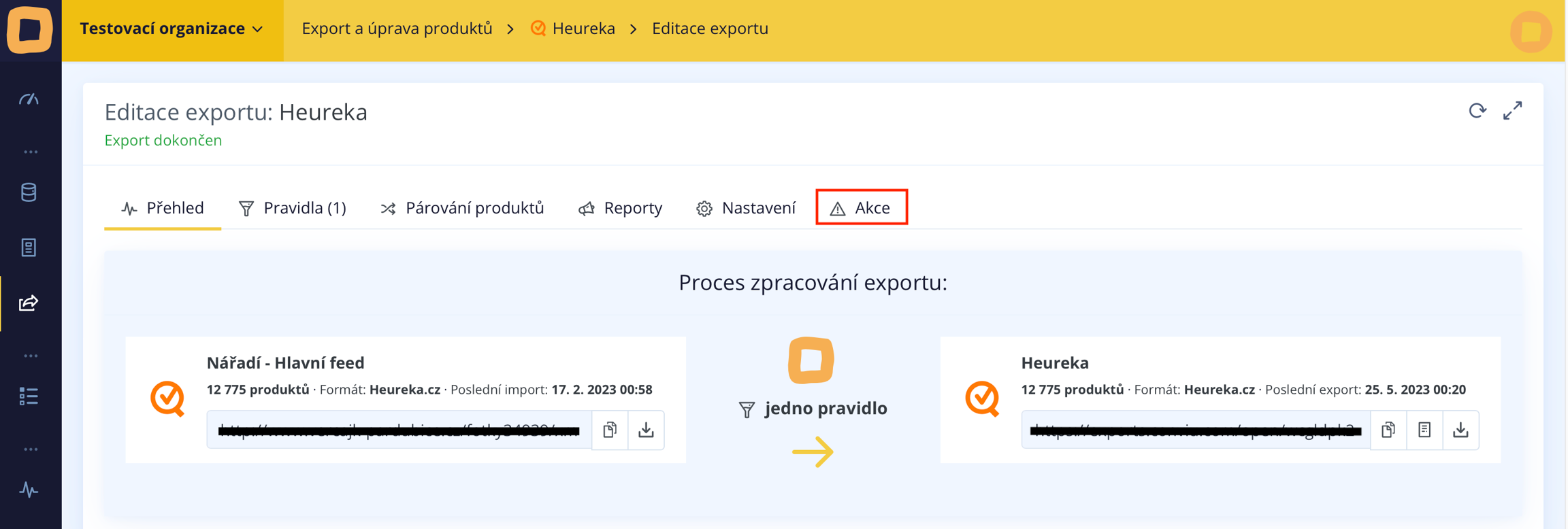 Nachdem Sie eine Regel erstellt haben, klicken Sie im Exportdetail auf die Registerkarte "Aktionen".