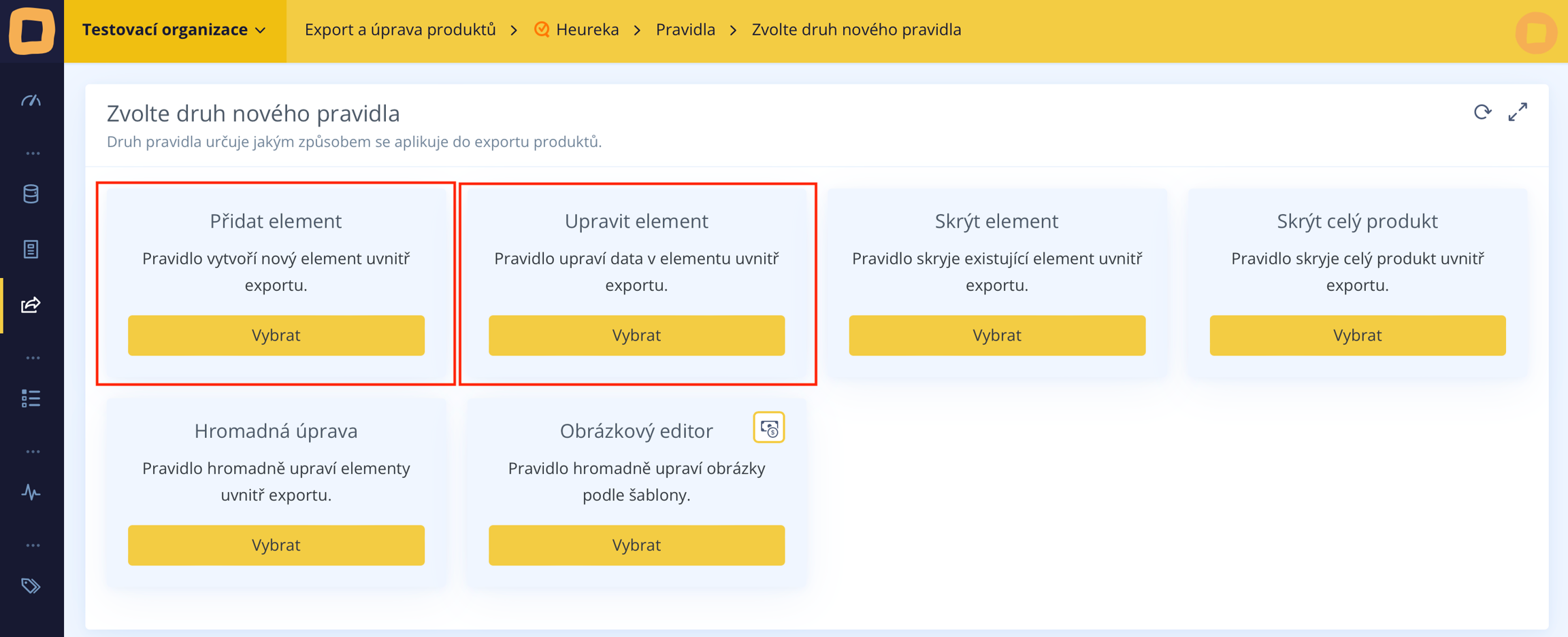 Wir wählen die Regel je nach der benötigten Anpassung aus. Wenn wir einen neuen Eintrag im Feed erstellen müssen, wählen wir die Option "Element hinzufügen". Wenn wir jedoch nur einen bereits vorhandenen Eintrag bearbeiten müssen, wählen wir die Option "Element bearbeiten"