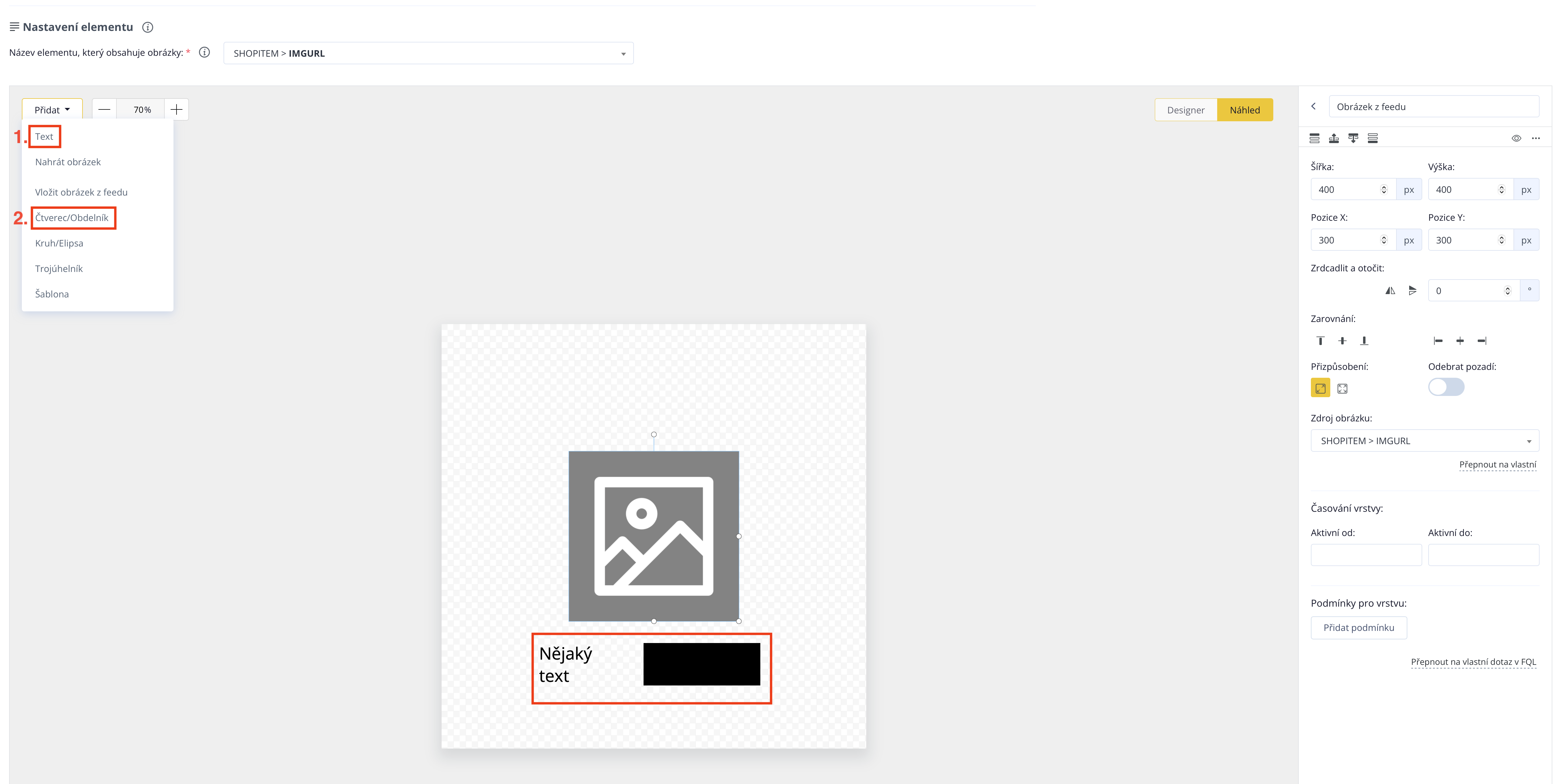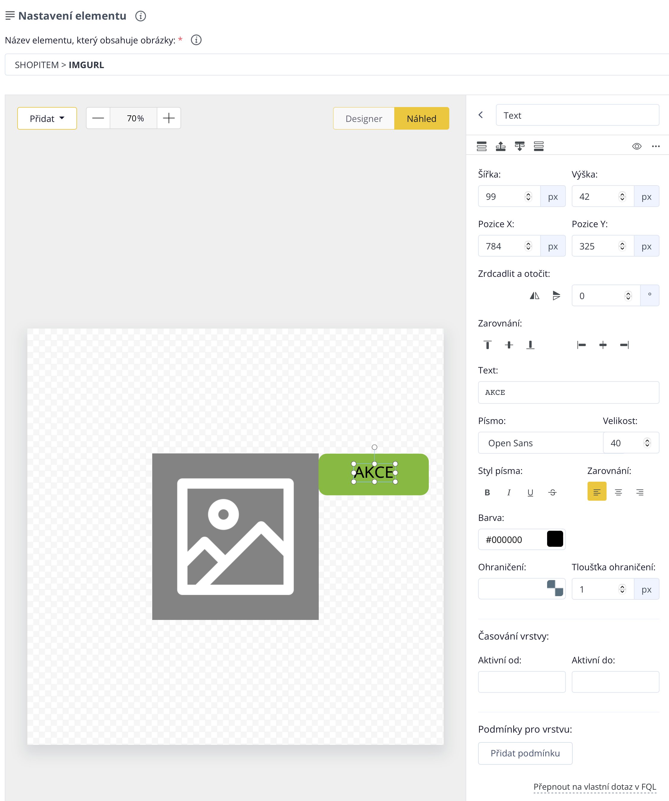 Im Textfeld schreiben wir "AKCE", passen den Text nach Belieben an und platzieren ihn nach den Anpassungen an die gewünschte Stelle.