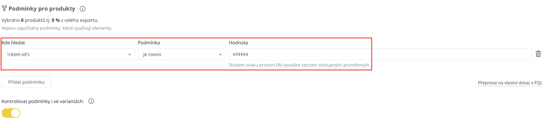 Als Bedingung fügen wir das von uns ausgewählte Produkt hinzu, für das wir die Vorlage erstellen möchten.
