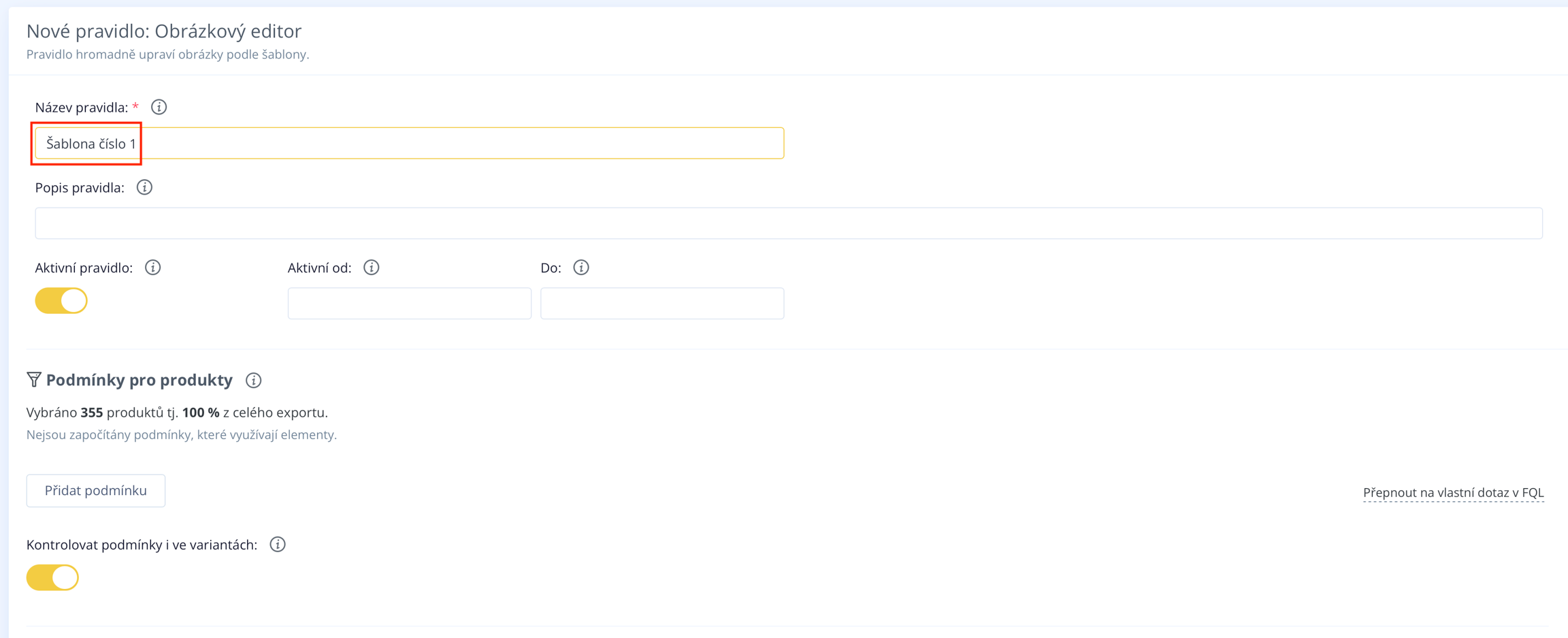 Zuerst füllen Sie den Regelnamen aus, zum Beispiel "Vorlage Nummer 1".