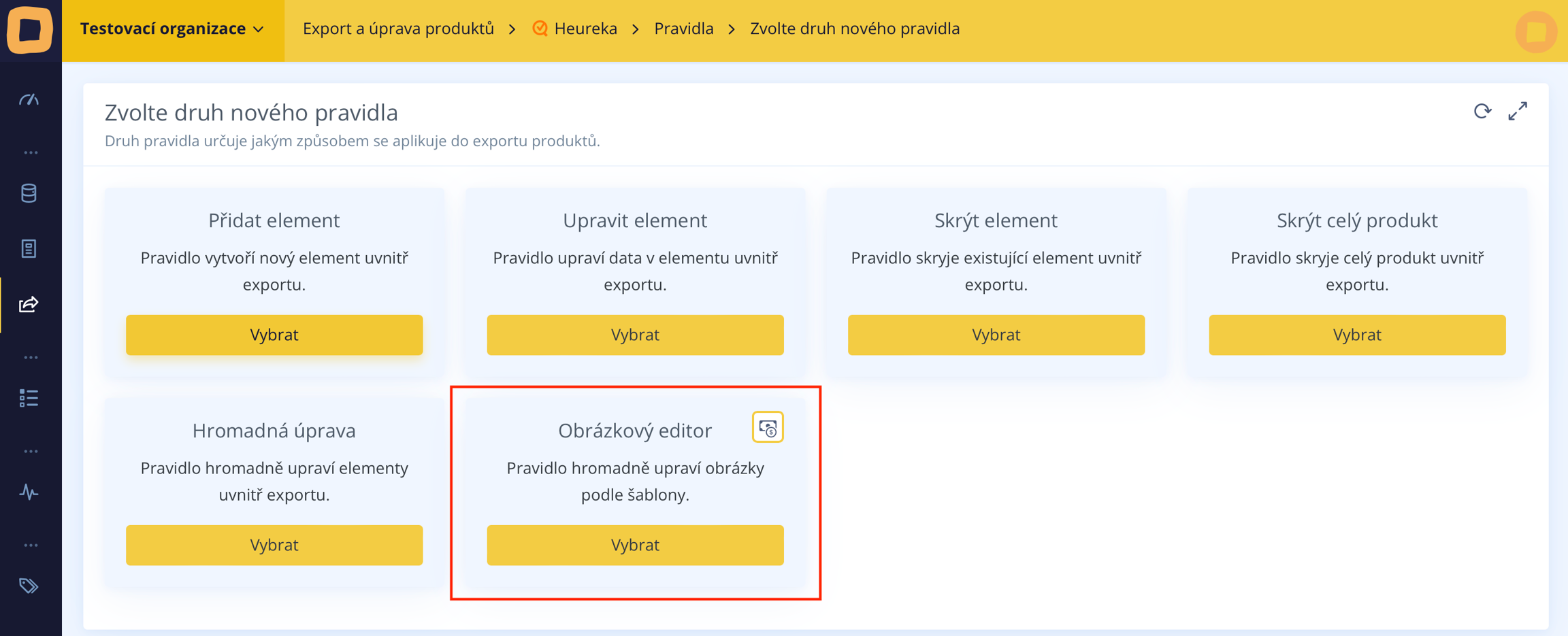 Sie finden den Bildeditor, wenn Sie ein neues Regel im Export erstellen, unter dem Tab "Neue Regel", wo Sie einfach die Option "Bildeditor" auswählen.
