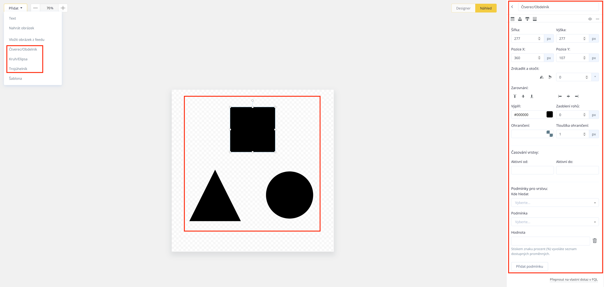 Eine weitere Ebene, die der Editor anbietet. Diese Ebenen können ebenso wie die Textebene auf verschiedene Weise bearbeitet und anschließend zu einer separaten Vorlage zusammengestellt werden.