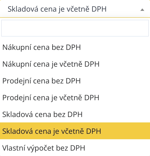 Nach dem Öffnen wählen wir die Option 'Lagerpreis ohne MwSt.' oder 'Lagerpreis inklusive MwSt.' aus.