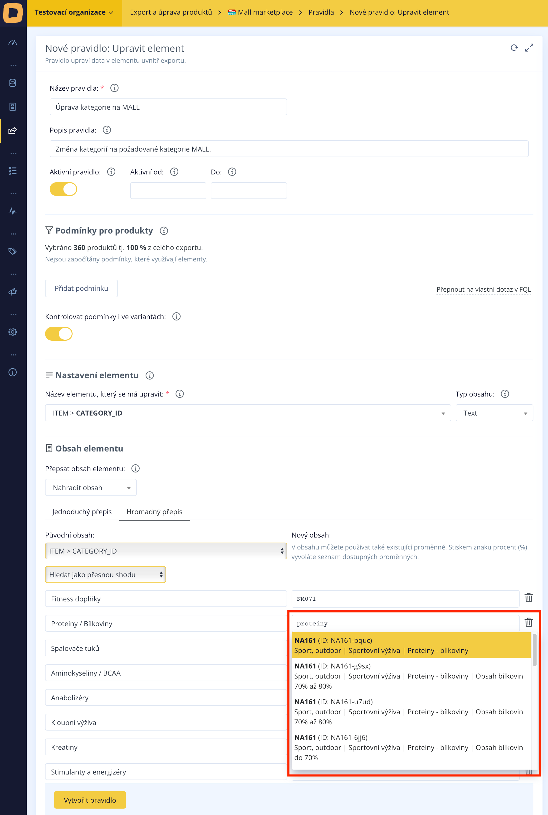 Die Anpassung erfolgt, indem wir in der Produktfeed-Exportdatei für den Mall-Marktplatz eine neue Regel namens "Element bearbeiten" erstellen.