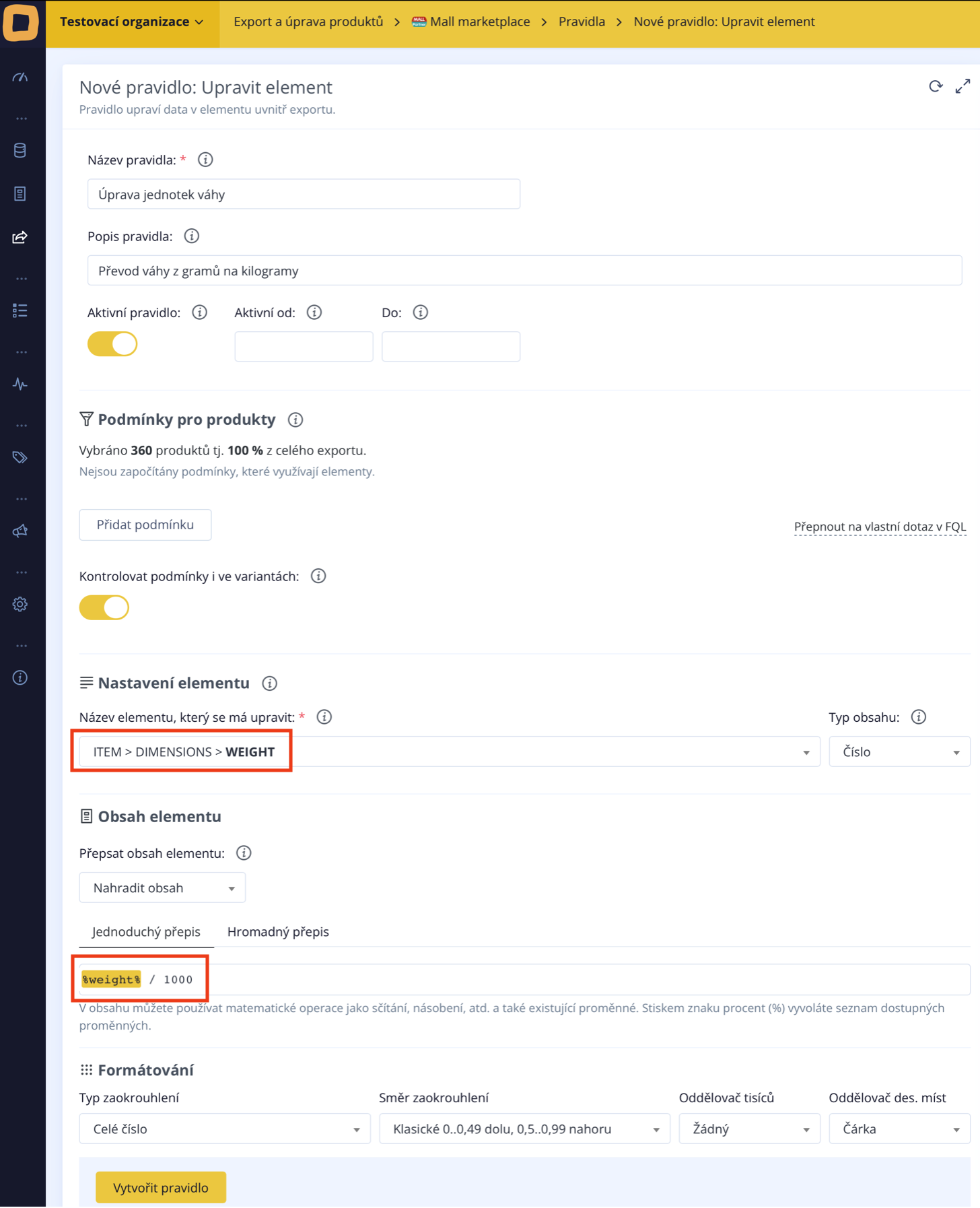 Wenn Ihr Feed Informationen zum Gewicht der Produkte enthält, ist es wichtig zu beachten, dass die Gewichtseinheit in Kilogramm und nicht in Gramm angegeben werden muss.