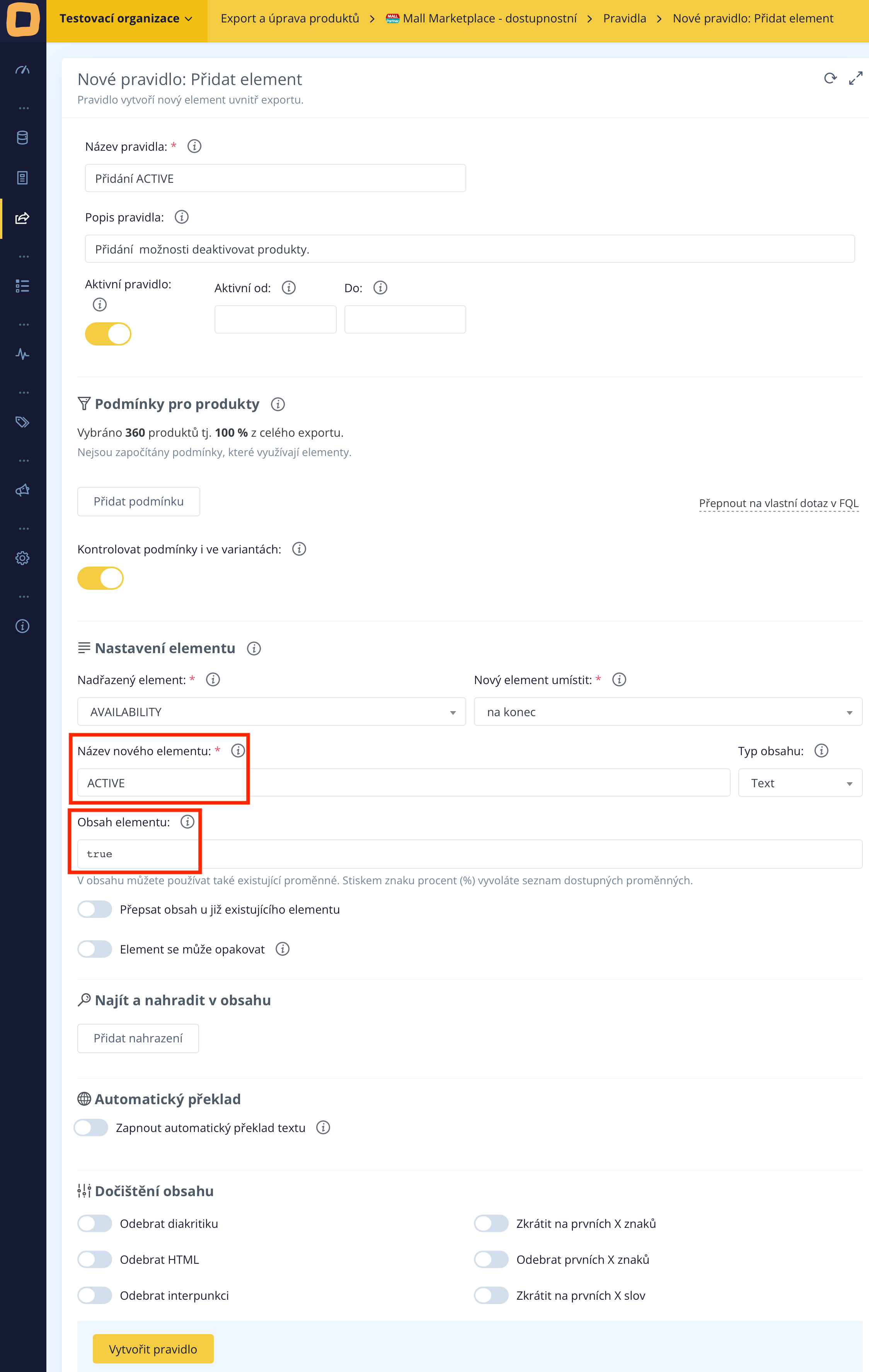 Das zweite Regel für die Bearbeitung des barrierefreien Feeds ist das Hinzufügen des Elements AKTIV