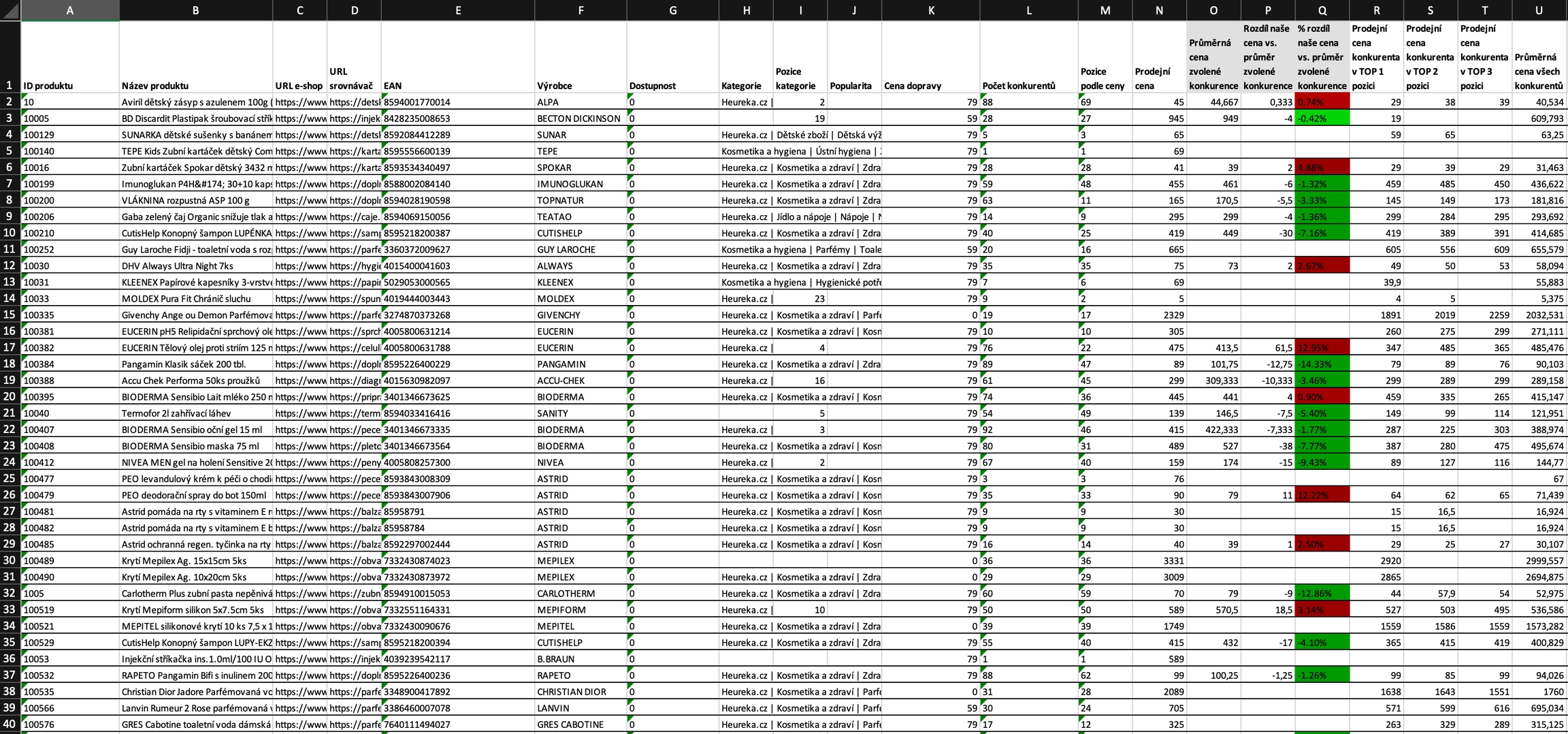 Kategorie - Produktkategorie. Sie können die Daten daher nach einzelnen Kategorien filtern. Sie können auch eine Pivot-Tabelle erstellen und einen Überblick über den Preisunterschied im Vergleich zur Konkurrenz nach einzelnen Kategorien anzeigen.