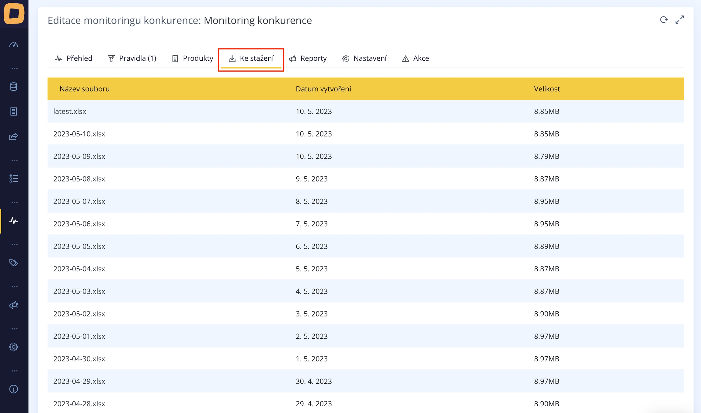 Sie finden es im Abschnitt "Download", wo Sie einzelne Preisüberwachungsberichte finden, die Sie herunterladen und in Excel öffnen können.