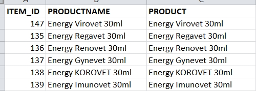 Für den erneuten Upload muss die Datei im CSV UTF-8-Format gespeichert werden. Es ist immer erforderlich, die Produkt-ID beizubehalten (gemäß dem Vergleichsprogramm, z. B. ITEM_ID, g:id, ...) sowie die Spalten mit den bearbeiteten Daten. In Ihrem Fall enthält die Datei 3 Spalten und 7 Zeilen.