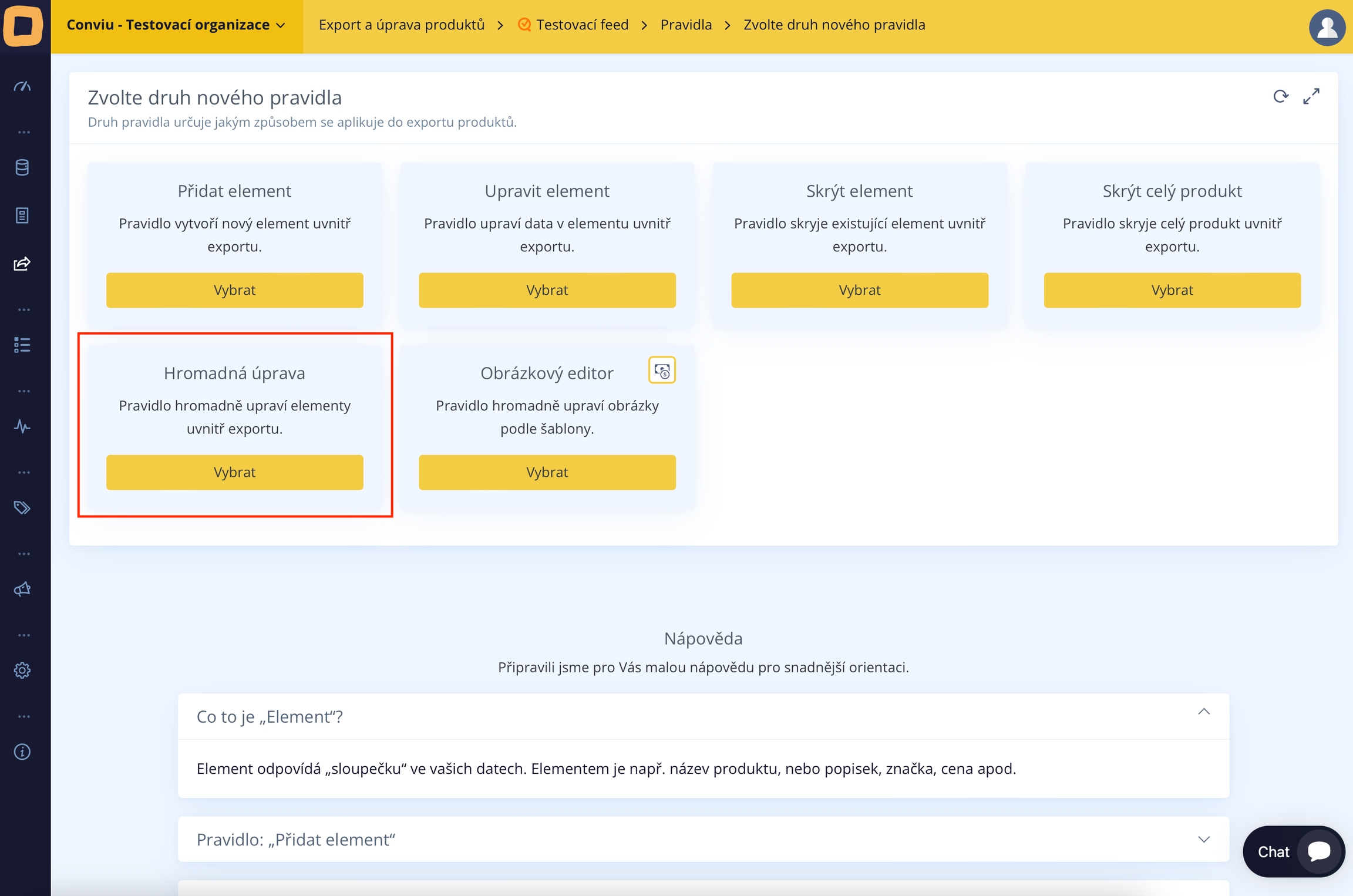 Bei der Exportauswahl wählen wir die neue Regel "Bulk edit"