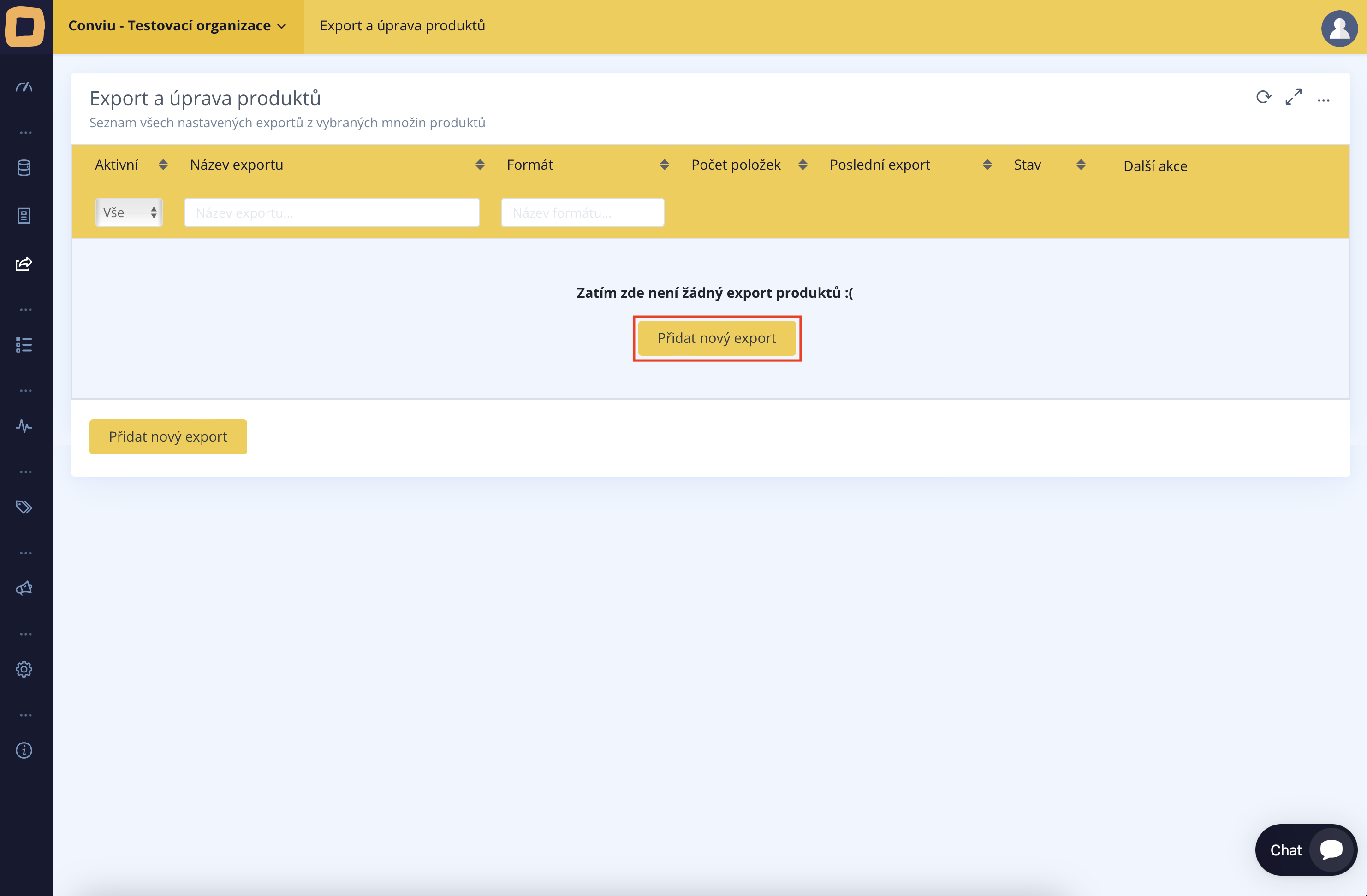 Nach erfolgreicher Verknüpfung Ihrer Daten (Feed) mit Conviu ist es auch notwendig, deren Export zu erstellen. Falls Sie dies nicht gleichzeitig mit der Erstellung des Imports gemacht haben, klicken Sie auf dem Bedienfeld auf der linken Seite auf "Export und Bearbeitung von Produkten".