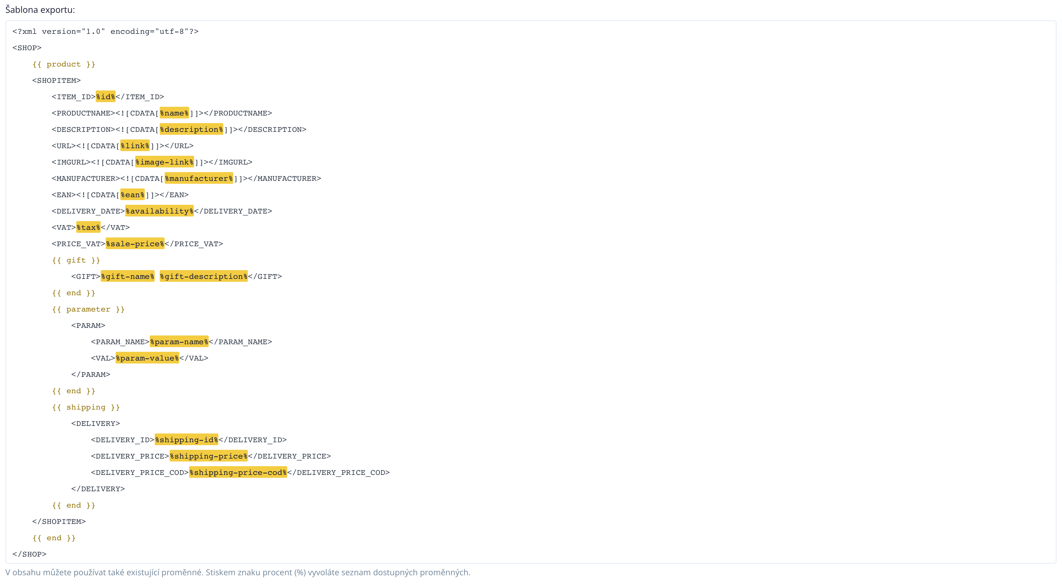 **Varianten zusammenführen:** Wenn Varianten zusammengeführt werden sollen, arbeiten Sie im Export mit dem Hauptprodukt. Zu den einzelnen Varianten gelangen Sie dann über {{ variant }}...{{ end }}.