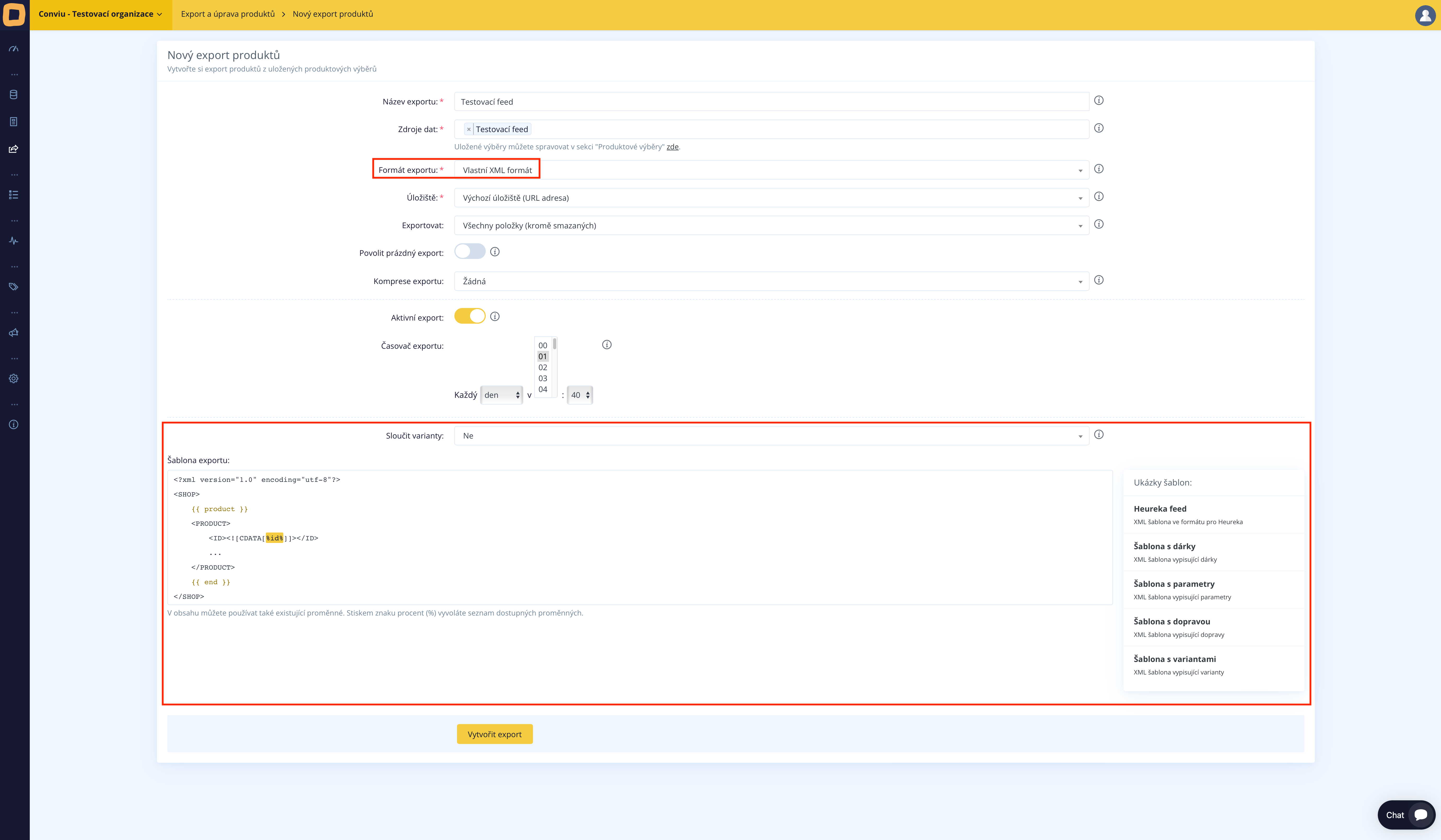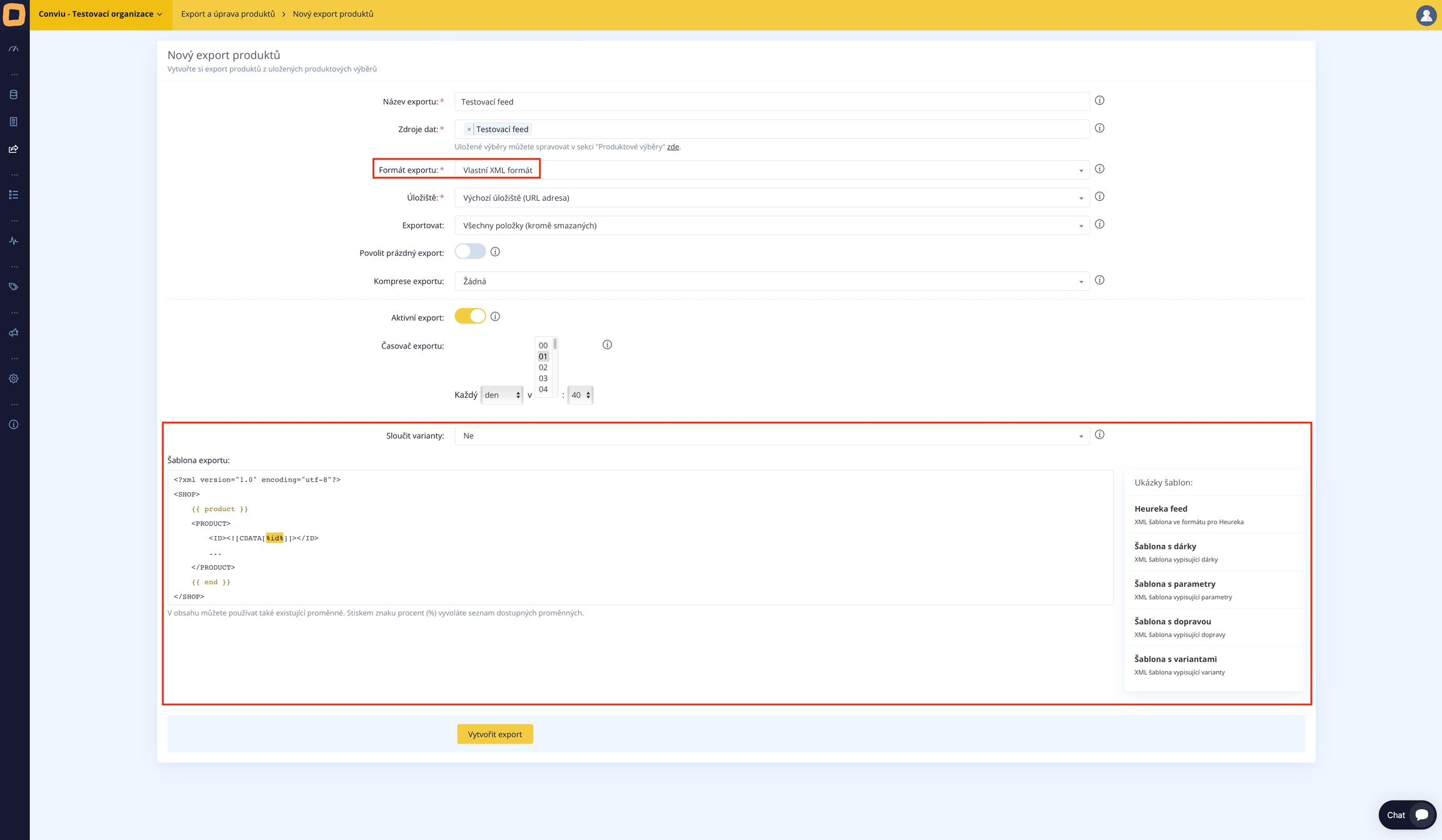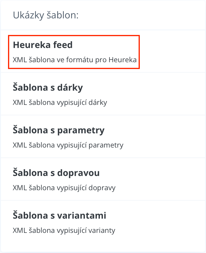 In unserem Beispiel wählen wir eine der bereits vordefinierten Vorlagen, nämlich den „Heureka Feed“.