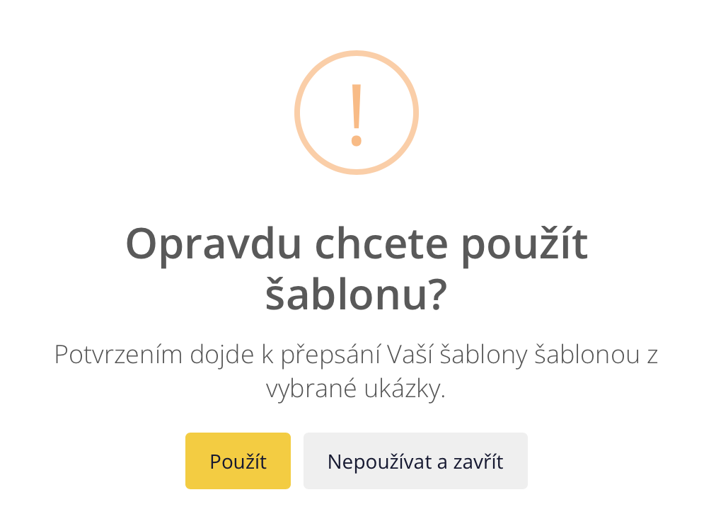 Nachdem Sie ein Format ausgewählt haben, wird eine Warnung angezeigt, die Sie darauf hinweist, dass die Verwendung dieser Vorlage Ihre aktuelle Vorlage durch die Vorlage der ausgewählten Beispielvorlage ersetzt.