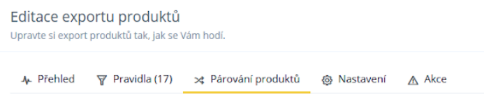 Dann wählen Sie bei der Exportierung auf Heureka.cz die 'Paarung von Produkten' aus.