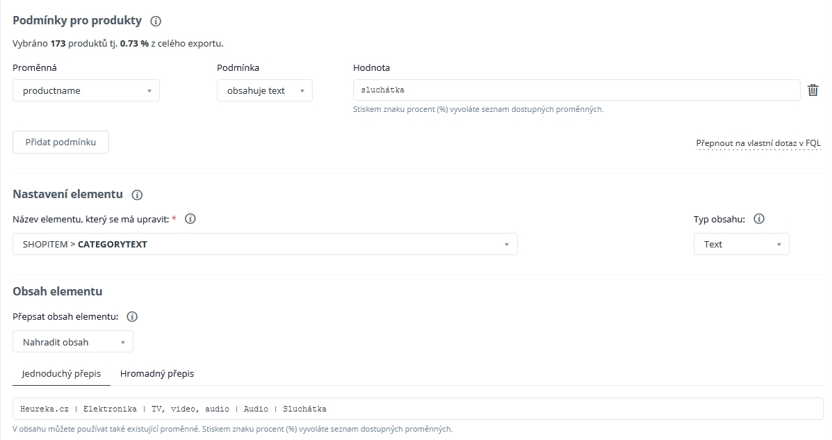 Im folgenden Beispiel ändern wir die Kategorie Dermokosmetik (wie auf der E-Shop-Website angegeben) in die Kategorie Heureka.sk | Kosmetik und Gesundheit | Kosmetik | Gesichtspflege | Spezielle Hautpflege (wie von Heureka.sk gewünschte Kategorie).
