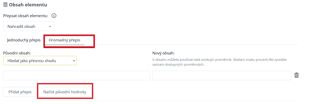 In den Einstellungen des zu bearbeitenden Elements wählen Sie CATEGORYTEXT aus. Klicken Sie dann unten in der Option "Elementinhalt" auf Massentranskription.