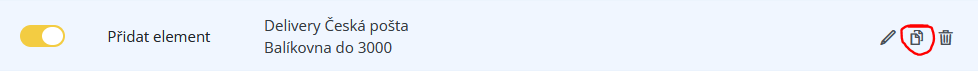 In der Beispielanwendung werden wir Balíkovna hinzufügen, die der Online-Shop für Produkte bis 3000 Kč zum Preis von 69 Kč und mit Nachnahme für 99 Kč anbietet.
