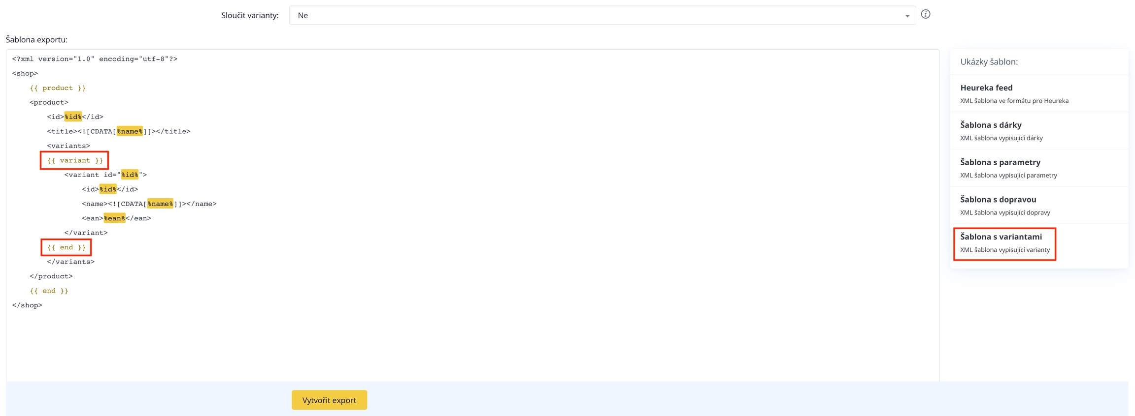 Die Voraussetzung für die korrekte Funktionalität von Varianten ist, dass im Import-Feed ein zugeordneter Identifikator für Varianten ITEMGROUP_ID (im eigenen Format) vorhanden ist. In anderen XML-Formaten wie Google/Heureka/Zboží usw. ist dies bereits automatisch gelöst.