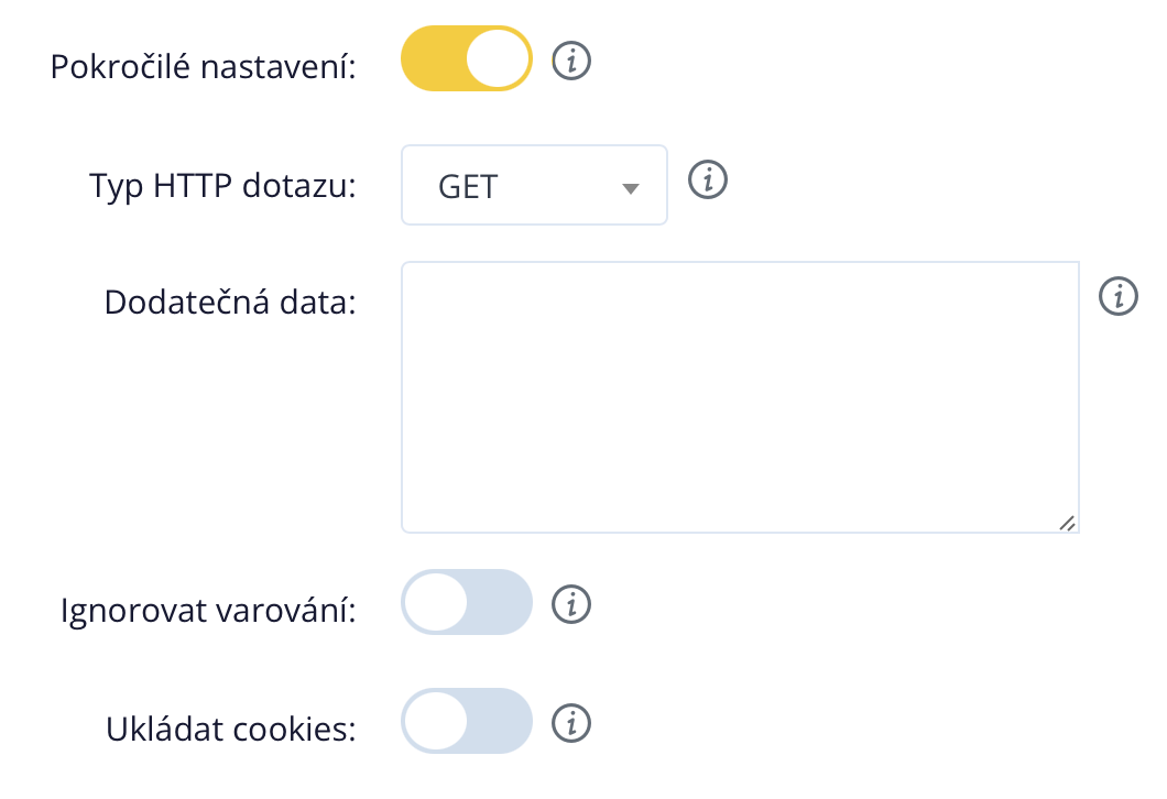 Erweiterte Einstellungen: Manchmal ist es erforderlich, spezifische Informationen zum Herunterladen des Feeds zu senden. Mit den erweiterten Einstellungen können Sie diese definieren.