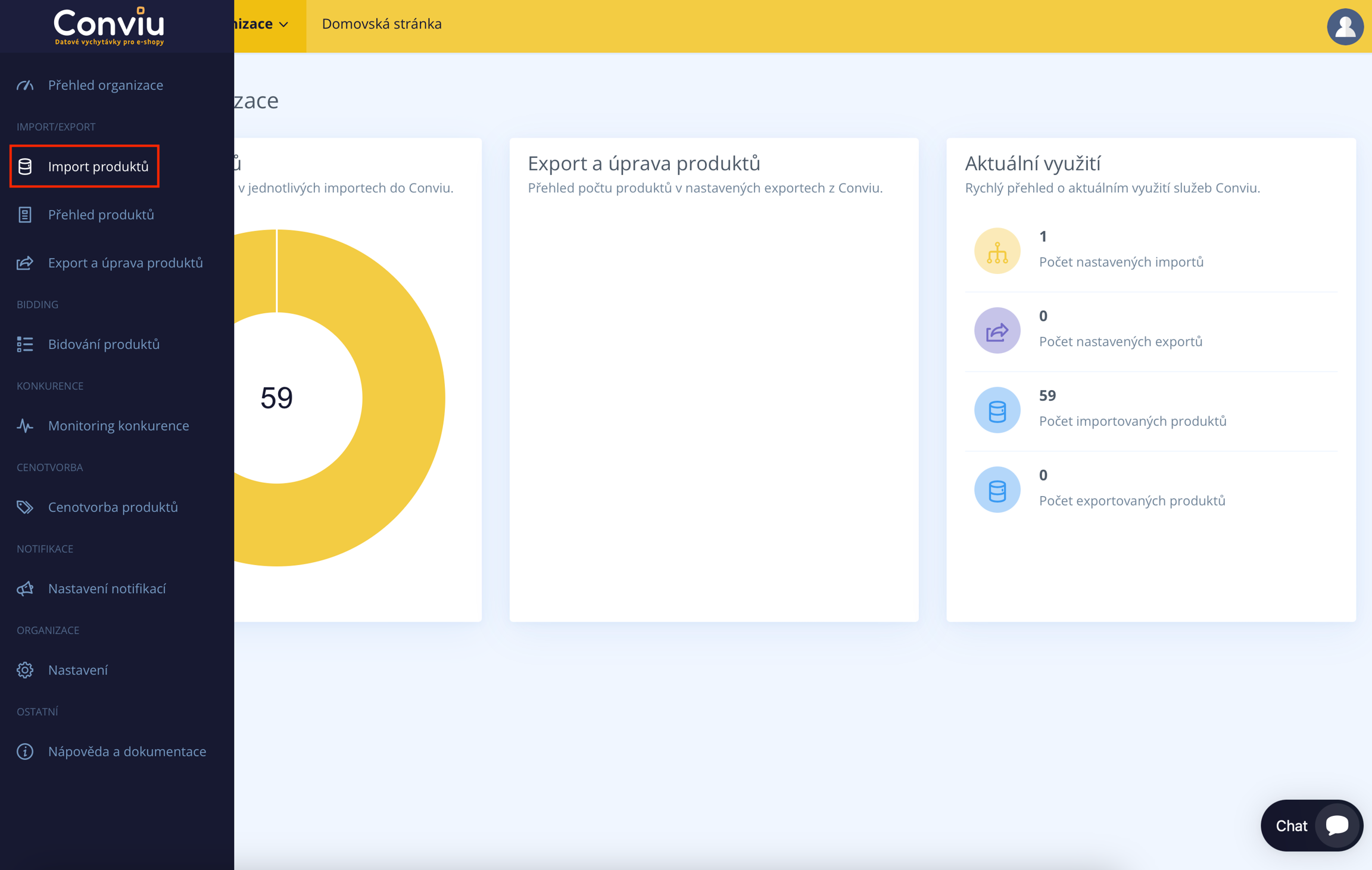 Nach der Registrierung Ihres Kontos in Conviu können Sie den ersten Datenimport zusammen mit der Einrichtung Ihrer Organisation (Online-Shop) durchführen. Falls Sie den Datenimport zu einem späteren Zeitpunkt durchführen möchten oder bereits Ihren Feed von unserer Seite verbunden haben und weitere hinzufügen möchten, klicken Sie auf der linken Seite des Dashboards auf "Import von Produkten".