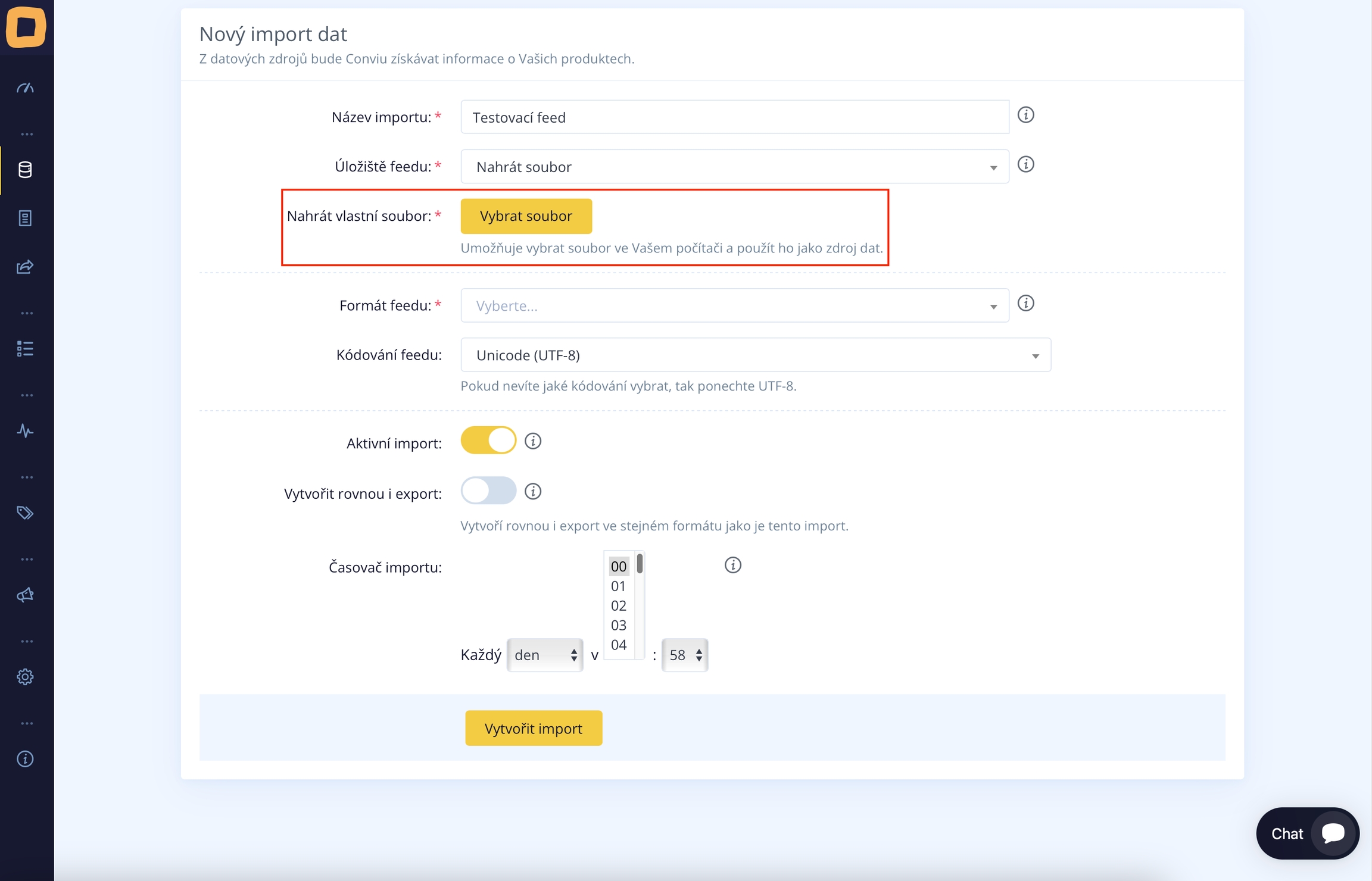 Sobald Sie ein geeignetes Feed-Speicherort auswählen, wird der Importvorgang auf die gleiche Weise fortgesetzt, wie Sie es in den vorherigen Hinweisen gesehen haben. Bei der Auswahl eines der vorbereiteten Formate können Sie die Hilfe "Datenimport - Grundlegende Informationen" nutzen, und wenn Sie ein benutzerdefiniertes Format auswählen, werden Sie es sicherlich nutzen Import dat ve vlastním formátu (XML, CSV…).