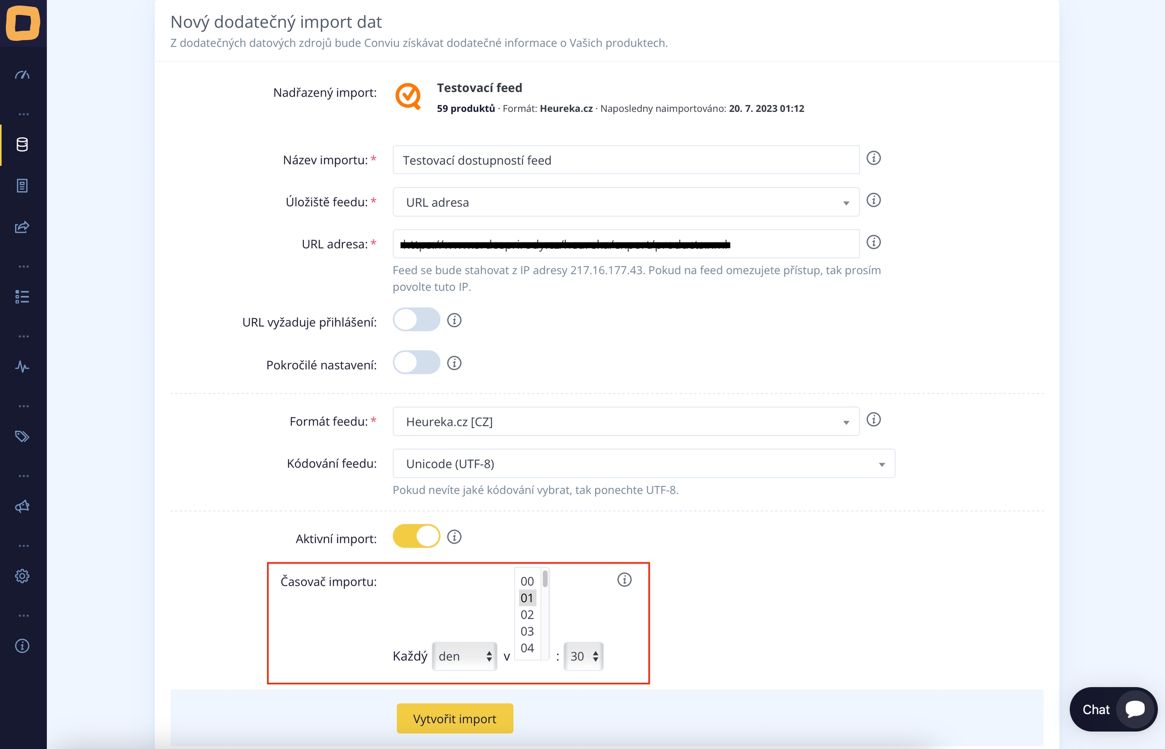 Wie Sie den Import des Haupt-Feeds in der Hilfe finden Import dat – základní informace.