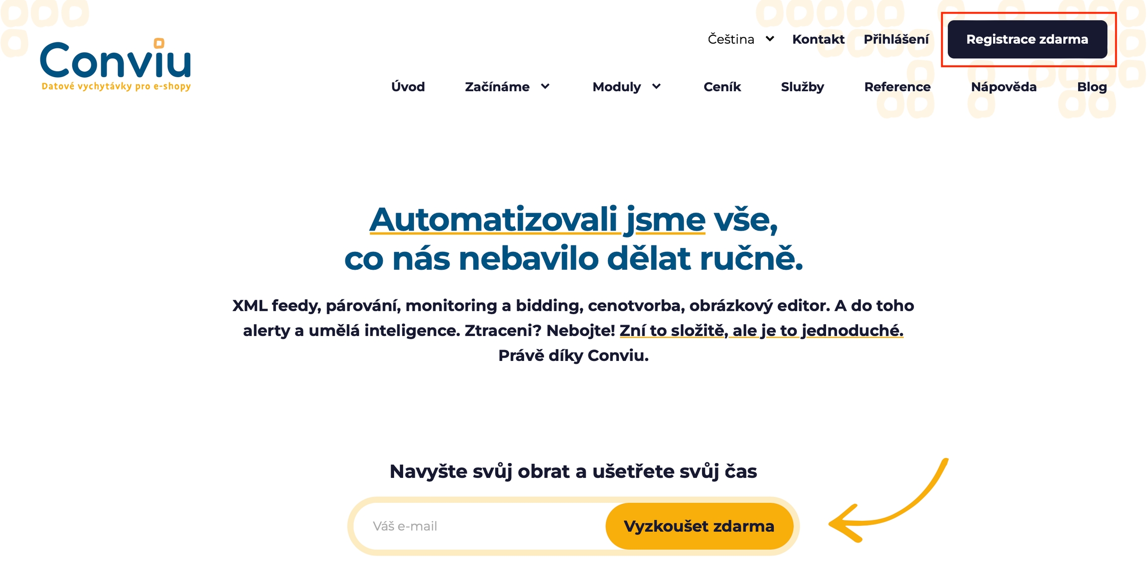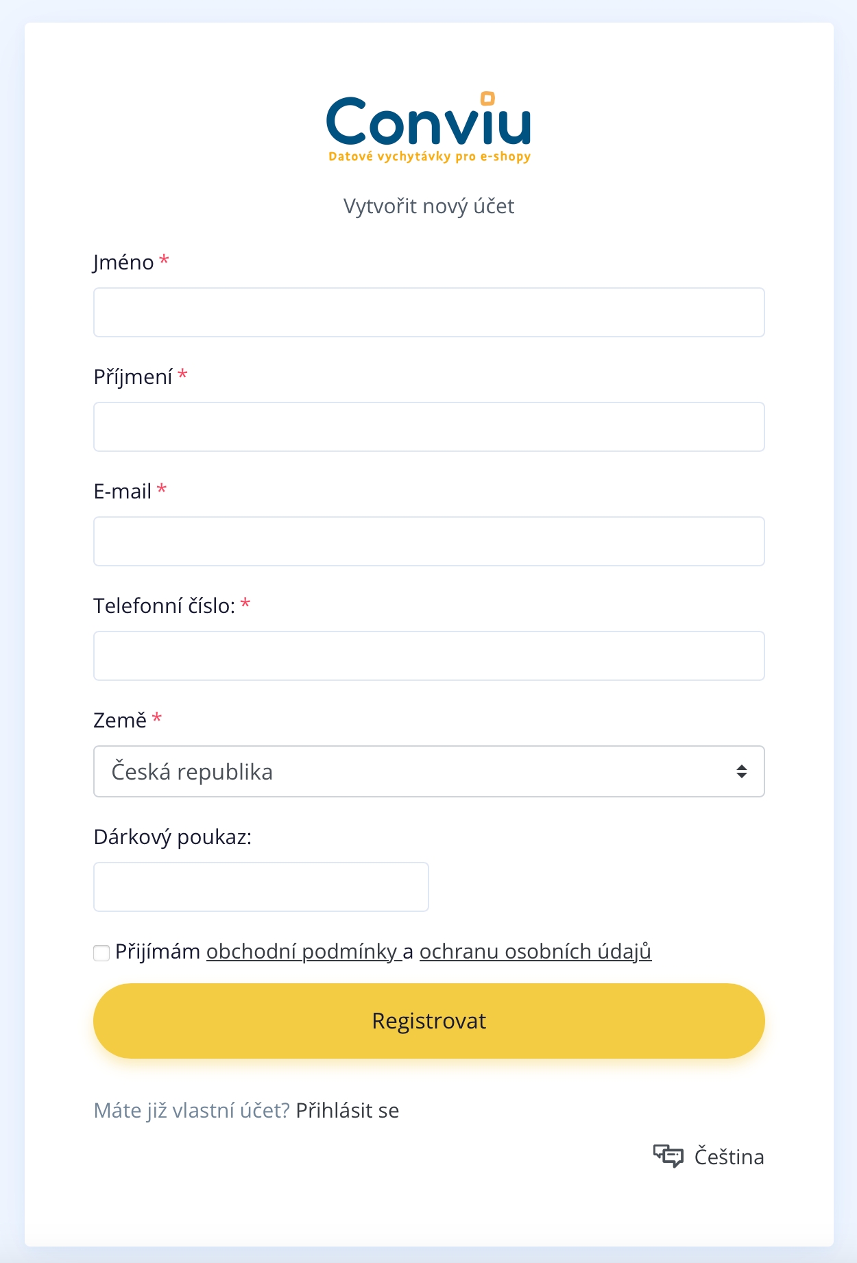 Auf unserer Website www.conviu.cz in der oberen rechten Ecke klicken Sie auf "Kostenlose Registrierung".